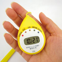 風邪の季節の新習慣! ONボタンを押すだけで、周囲の気温と湿度を計測し、風邪をひきやすい環境であるかどうかをブザーと5段階の光でお知らせします。 実用新案登録済(第3157604号)。RoHS適合品。