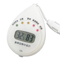 ボタンを押すだけで熱中症の危険性をブザーと5段階のLEDライトで表示します。実用新案登録済(第3157604号)。RoHS適合品。